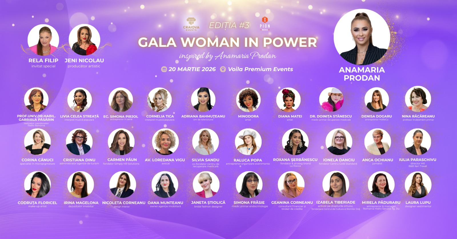 Pe 20 martie, Craiova celebrează performanța feminină la Gala Woman in Power inspired by Anamaria Prodan, ediția #3